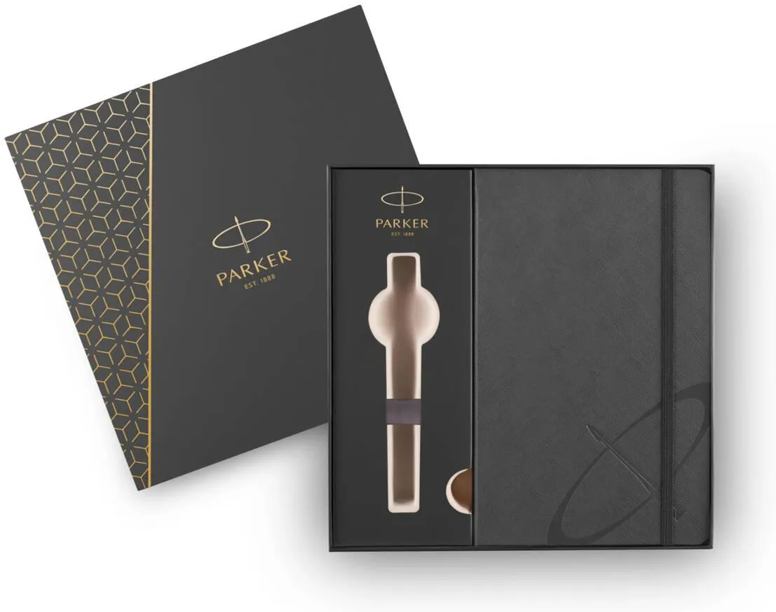 Eredeti Parker ajándékdoboz, egyetlen termékhez. Tartalmaz egy vonalas Parker jegyzetfüzetet.